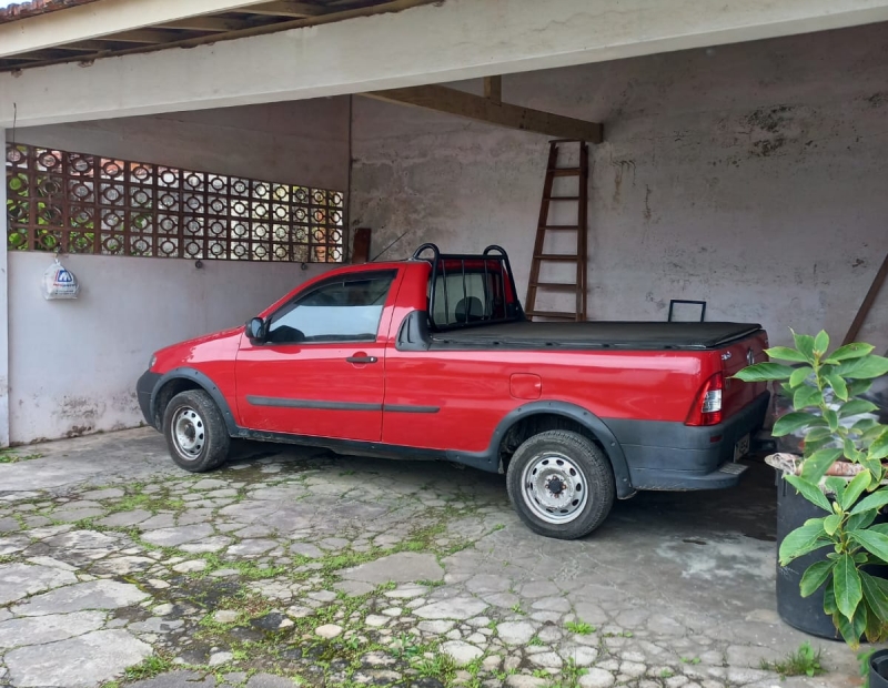 Amplo espaço no quintal, com garagem para cerca de 5 veículos. Churrasqueira coberta nos fundos, varanda coberta na frente do imóvel e quartinho que pode ser utilizado pra guardar suas ferramentas, etc.