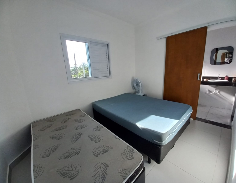 No piso superior são 3 dormitórios, sendo 1 suíte com sacada e vista para o mar.