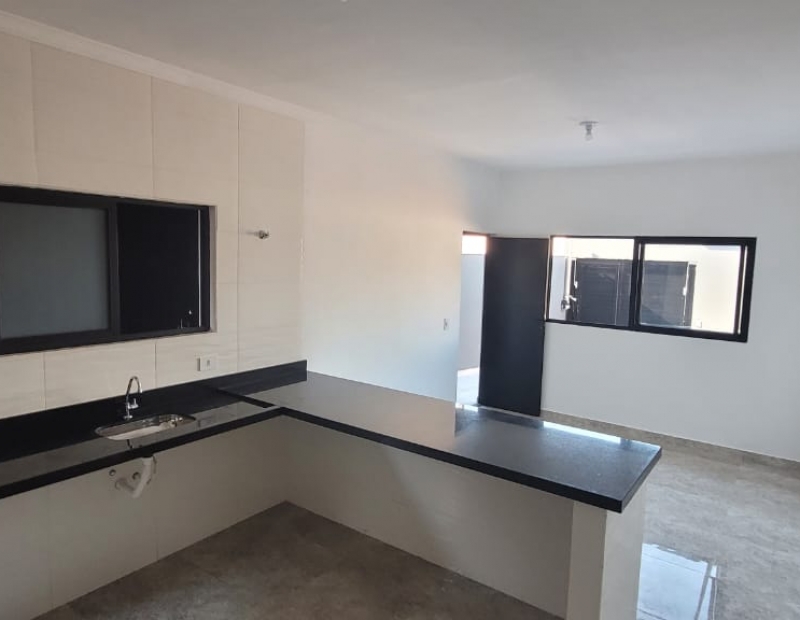 São 2 dormitórios sendo 1 suíte, wc social, sala e cozinha americana.