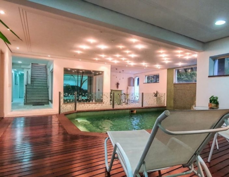 Linda residência mobiliada e decorada, em condomínio com total de 7 suítes sendo 5 delas com hidromassagem, 4 wc social, ampla sala de estar, sala de jantar, copa e cozinha com ilha.