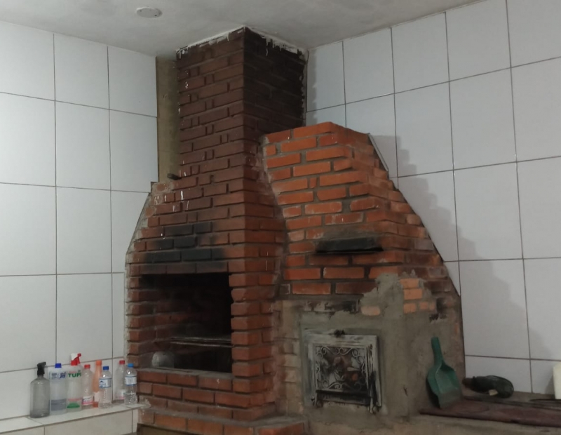Área de churrasqueira com forno e fogão a lenha.