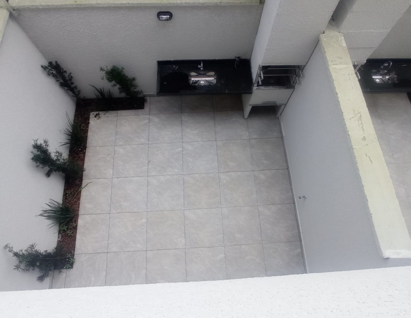 Lavabo, churrasqueira individual e área de serviço coberta