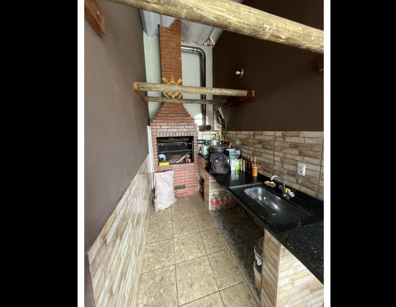 Área de serviço, área gourmet com churrasqueira e fogão caipira.