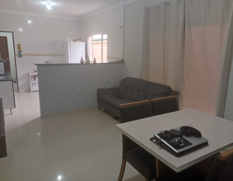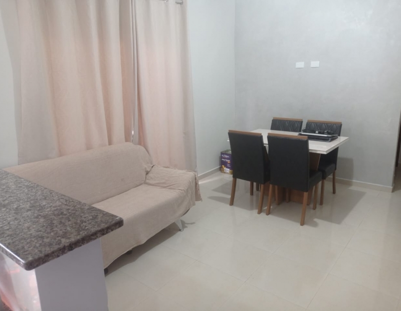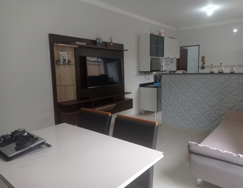 São 2 dormitórios, sendo 1 suíte, wc social, sala e cozinha americana.