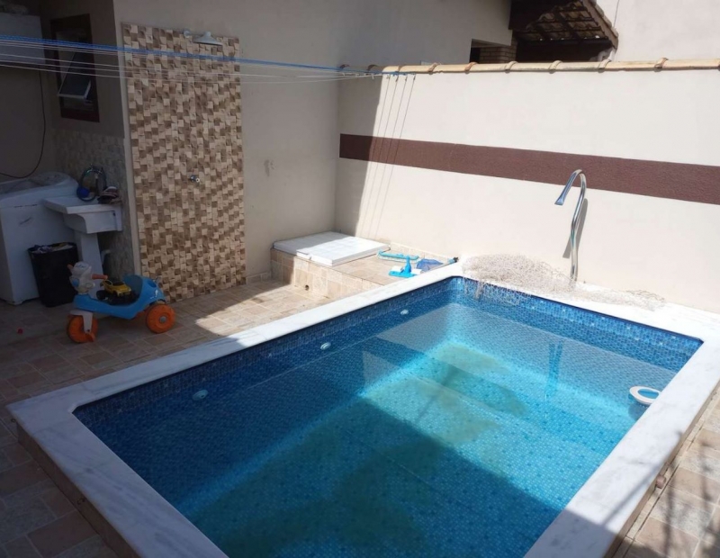 Piscina, churrasqueira e lavanderia.