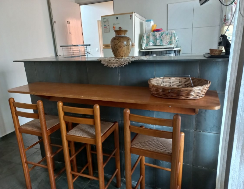 Composto por 1 dormitório, 1 sala de estar com sacada, 1 cozinha americana e 1 wc social.