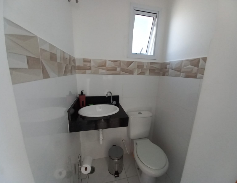 No piso inferior temos a cozinha e a sala em conceito aberto e 1 lavabo.