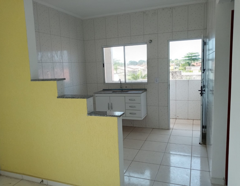 Sobrado em condomínio com 68m² de construção! São 2 suítes, sala e cozinha americana, lavabo e área de serviço coberta!
