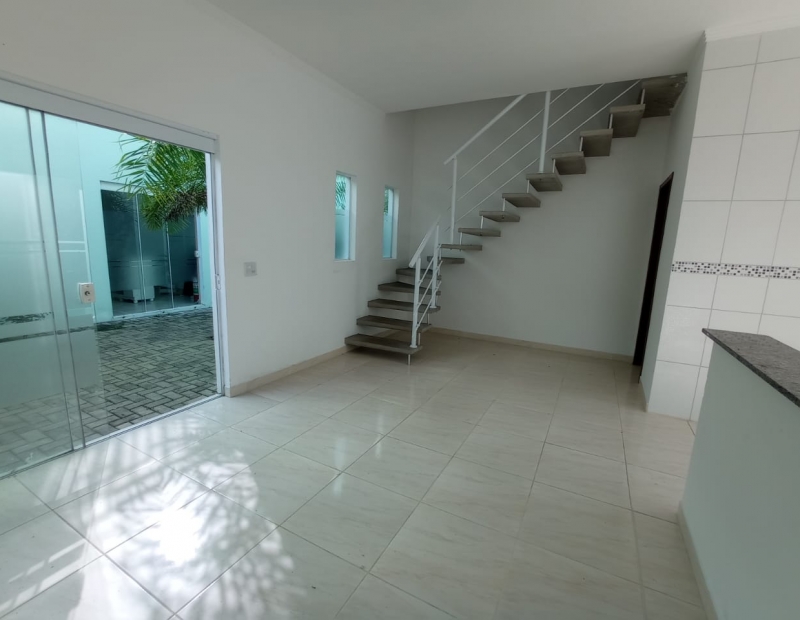 Térreo com sala e cozinha americana, lavabo, pequeno quintal nos fundos