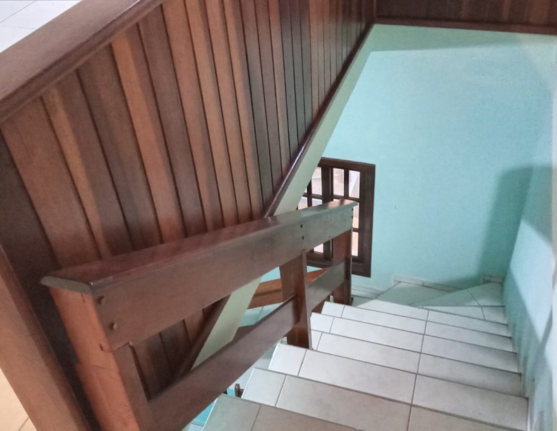 Possui na parte superior 2 dormitórios, wc social e sala.