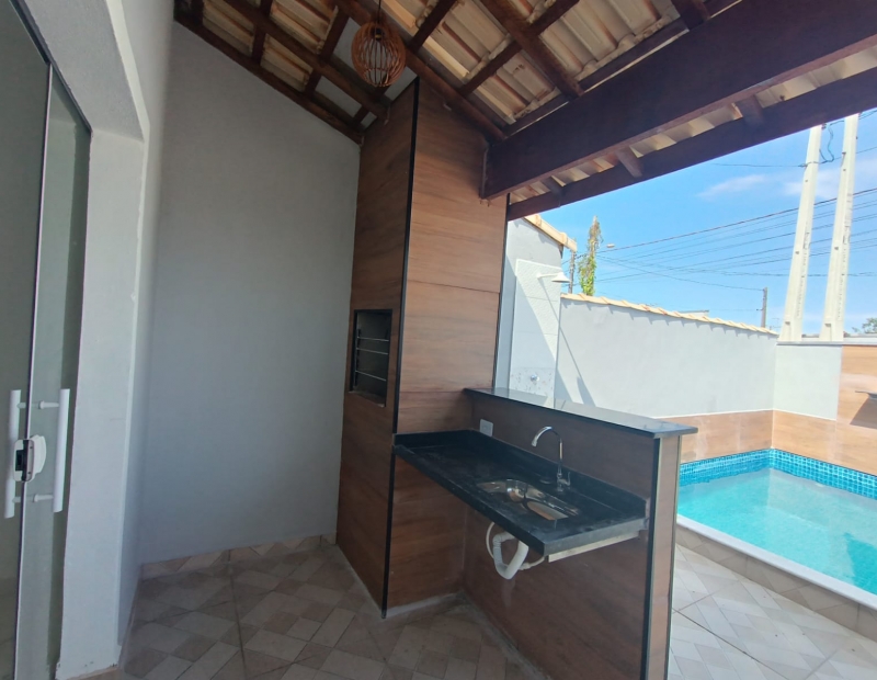 Localizada no bairro Jardim das Palmeiras, cerca de 700 metros da praia, esta casa nova conta com 2 dormitórios sendo 1 suíte, sala e cozinha integrada, oferecendo maior interação entre a família, wc social com lindo acabamento, área de serviço coberta nos fundos.