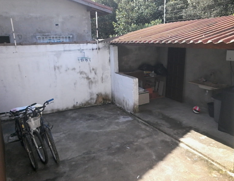 Garagem para 2 autos, quintal amplo, com porta lateral.